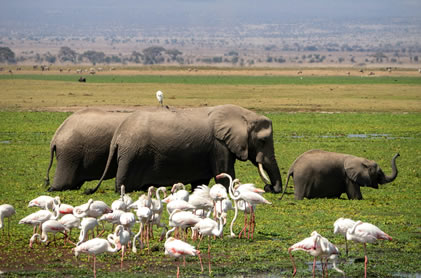 Early morning pick up and then depart for Amboseli National Park via Masai land. On arrival, make a game drive en route to the camp for lunch as well as check in. Relax until 16:00 hrs time for the afternoon game viewing. This park is the home of Elephants, Wildebeest (Gnu), Buffalos, Gazelles, Lions, Cheetahs, monkey families and rare bird species. In the early evening, the clouds clear, exposing the snow –capped dome of Mt. Kilimanjaro. Dinner and overnight at sentrim Amboseli Camp or Kibo Safari Camp .